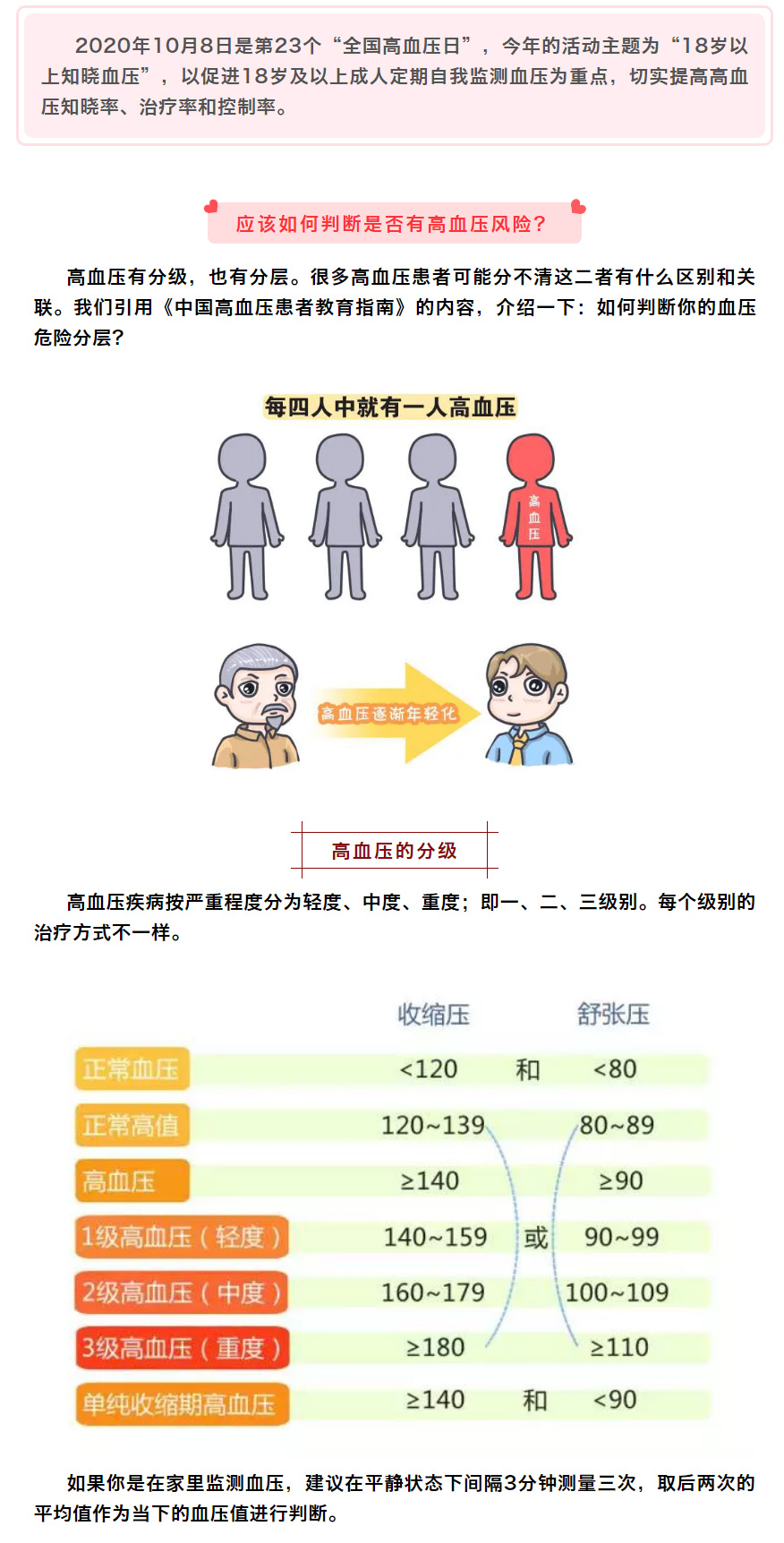 2020年10月8日是第23个“全国高血压日”,今年的活动主题为“18岁以上知晓血压”
