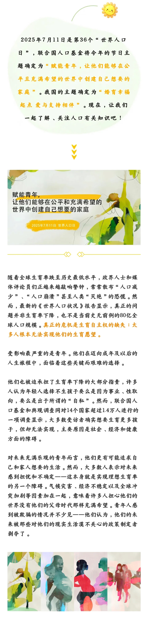 世界人口日:赋能青年,让他们创建自己想要的家庭