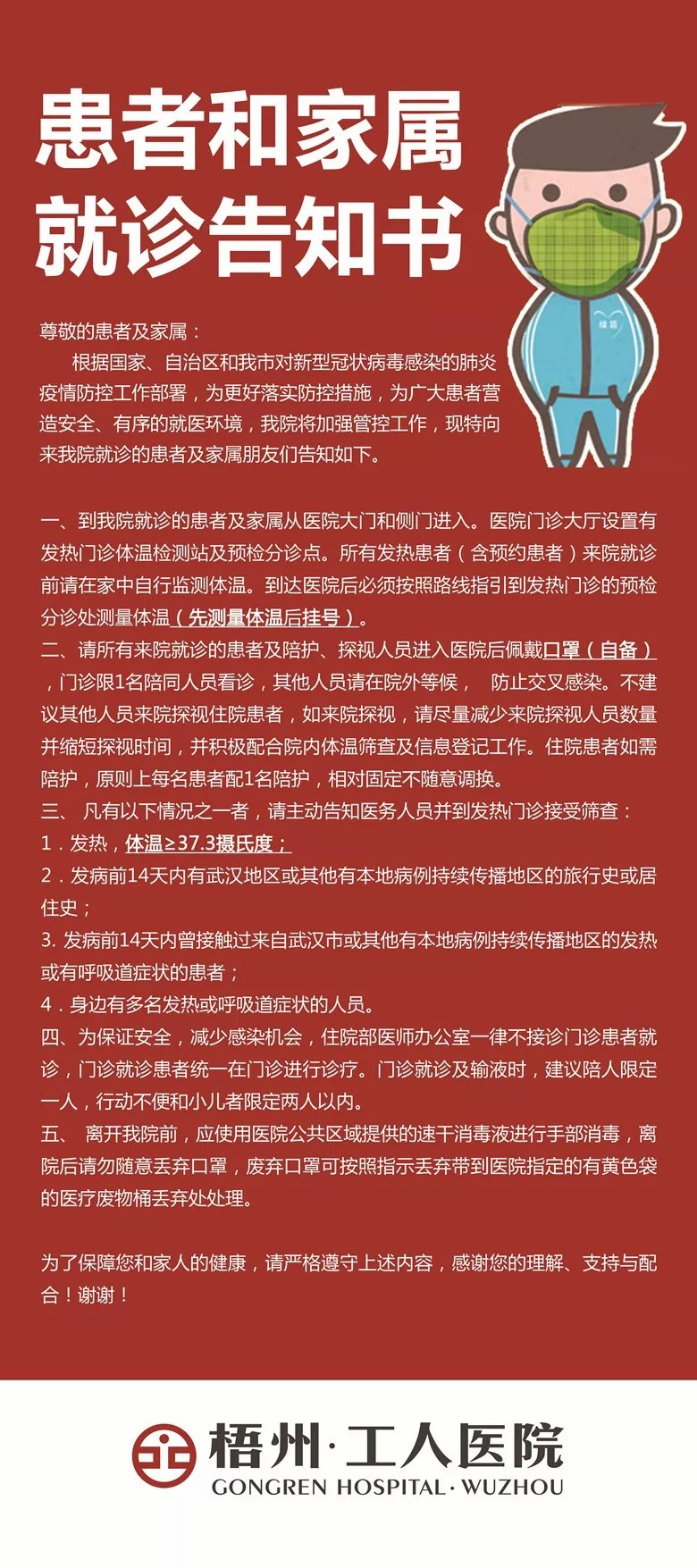 梧州市工人医院患者和家属就诊告知书