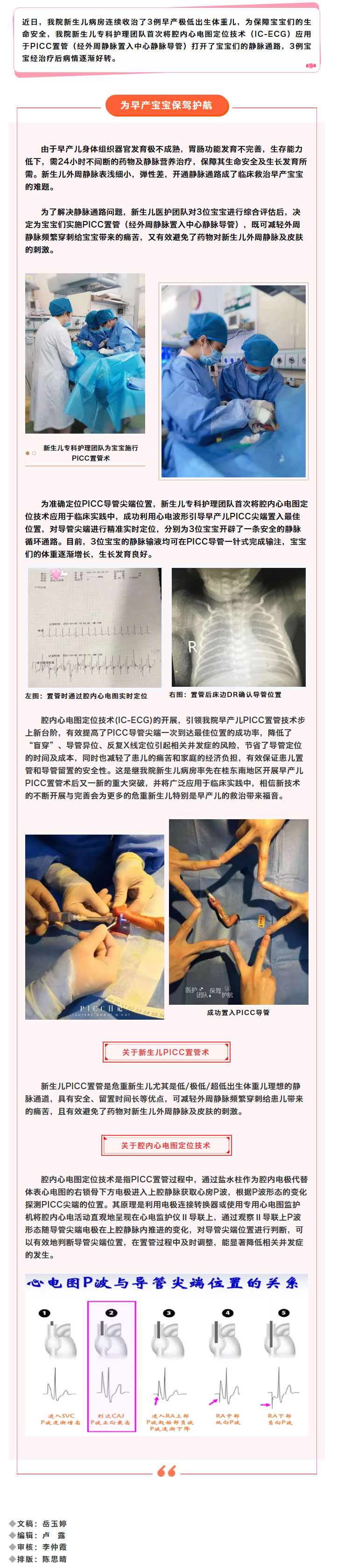 【精准定位 畅通脉路】腔内心电图定位助力极低出生体重儿开辟静脉循环通路