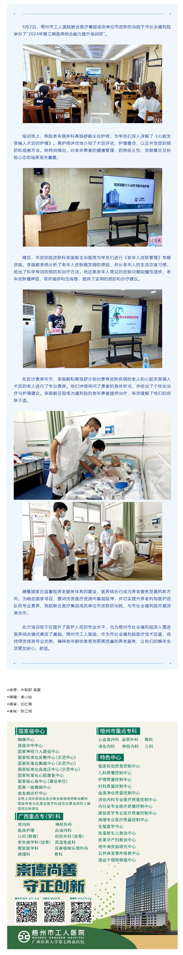 老有所养 老有所“医”——梧州市工人医院举办2024年第三期医养结合能力提升培训班