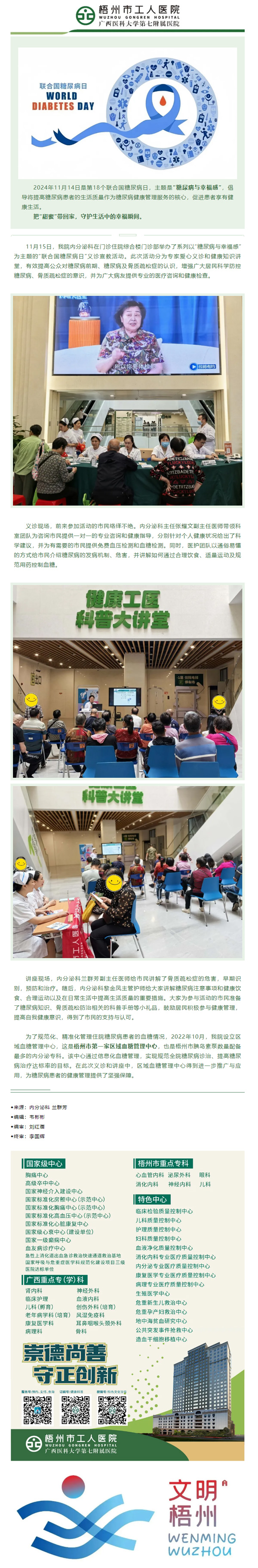 梧州市工人医院开展“联合国糖尿病日”主题系列活动