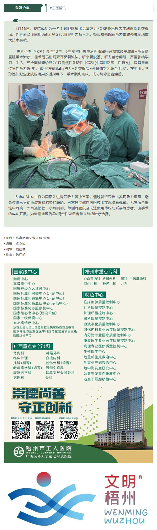 工医医讯|我院成功开展梧州地区首例Baha-Attract骨导听力重建术