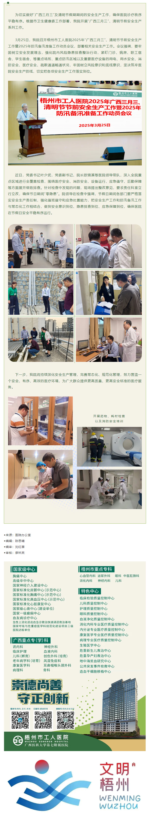 梧州市工人医院开展“广西三月三”、清明节前安全生产系列工作