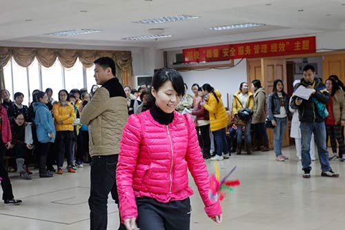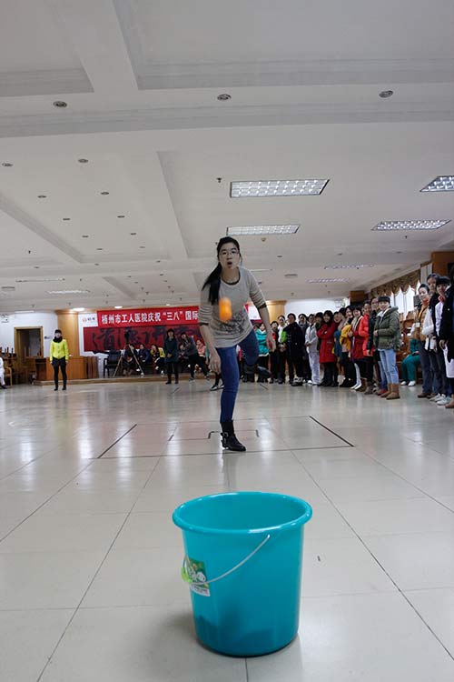 活动现场,参加活动的女职工们排成一队队小长龙,跃跃欲试、争先恐后地等着大显身手。本次活动有多项接力赛、踢毽、踢足球绕杆接力赛、传投乒乓球、掷球对抗赛等,有毛巾作为“战利品”,更是使得现场气氛异常欢乐。面对活动现场热闹的气氛,护士李阿姨说:“今年的“三八”妇女节过得非常开心。”
