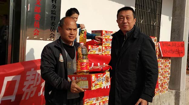 2月8日上午,由梧州市工人医院院长黄志红带队,副院长姜洪、工会主席许敏昭、院长助理刘红蓓、纪检监察人员蒋哲等,带着油、面、糖果等生活物资,来到对口支援的贫困村——苍梧县岭脚镇丰田村,为该村88户贫困户一一送上了慰问品和新春祝福。